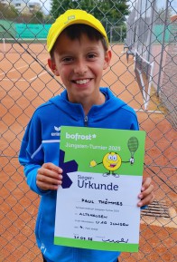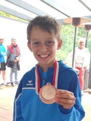 In spannenden Matches begeisterten die Jüngsten Ihr Publikum. Paul Thömmes startete in der Altersklasse U10 und konnte nach tollen Ballwechseln, sportlicher Fairness und Können zunächst den Gruppensieg erreichen. Auch im Viertelfinale konnte er sich zunächst erfolgreich durchsetzen, unterlag aber nach einem spannenden Halbfinale seinem Gegner. Am Ende durfte Paul sich über den dritten Platz freuen und wurde mit einer Medaille belohnt. Die Tennisabteilung Langenenslingen gratuliert Paul zu dieser großartigen Leistung.