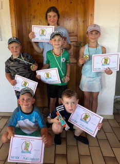 Bei den Maxis, die schon in die Schule gehen und von denen viele den Weg im vergangenen Winter über die Tennis AG der Grundschule zu uns gefunden haben, gewann Matti Kilgus Gold, ganz knapp gefolgt von David Miller mit Silber. Bronze erkämpfte sich Elisa Heine. Weitere Plätze belegten Mia Guter, Aaron Schäfer und Sidney Gulde und erhielten tolle Sachpreise.