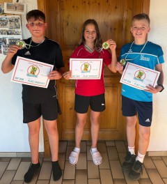Bei der U 10, die bereits gegeneinander antreten und von denen die meisten Kinder schon erste Mannschaftserfahrungen haben, waren neben den Matches auch Schnelligkeit und Geschicklichkeit bei den Staffelspielen gefragt. Hierbei erreichte Paul Thömmes Platz 1, gefolgt von Eric Wurst auf Platz 2 und Robin Buzengeiger auf Platz 3. Weitere Plätze belegten Ferdinand Ott, Elias Weiß und Mathilda Gulde.
